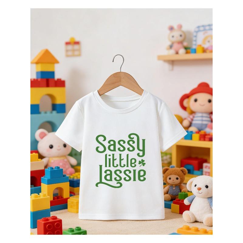European sizes T-Shirt, "Sassy Lassie" Shamrock Graphic Tee, Comfortable Crew Neck Short Sleeve