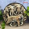 Vintage Forest Elephant Round Metal Wall Art 20x20 cm Bar Decor