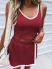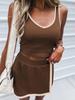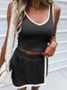 Европейско-американская мода 2026: Спортивный комплект для женщин: топ на тонких бретелях и юбка с цветовыми блоками и защитой от прозрачности