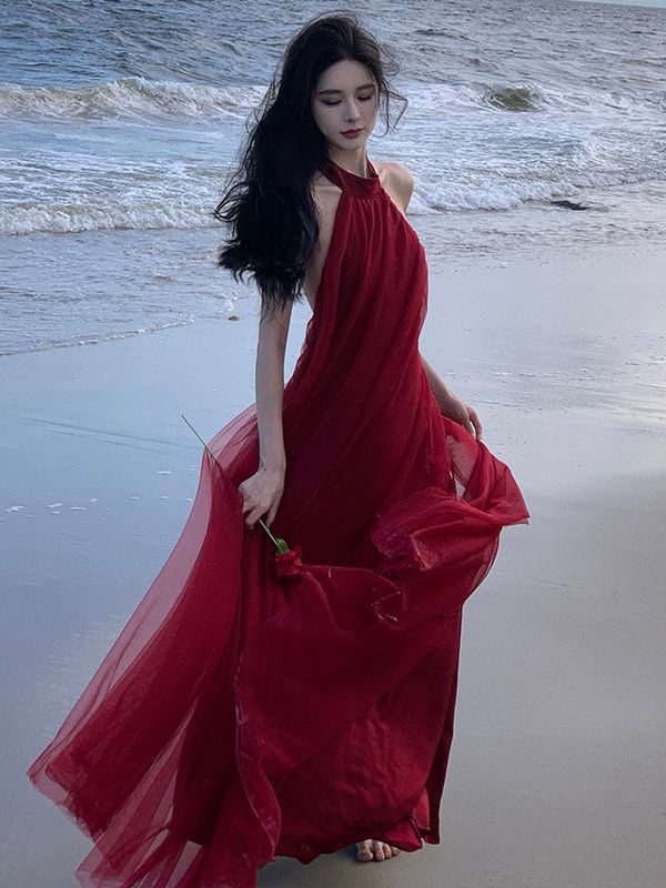 Фея Сетчатое Платье на Шею Платье с Открытой Спиной Платье для Свадебного Тоста Платье для Выхода Свадебная Сетка Утреннее Платье Женское Длинное Платье