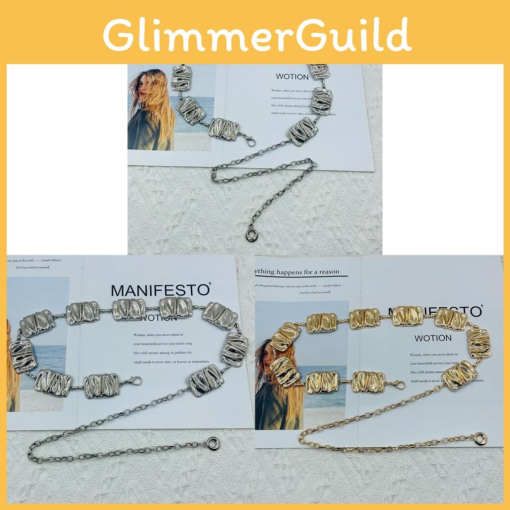 This metal waist chain features an irregular rectangular design that enhances any outfit with a modern, stylish touch. Made of durable metal, with a secure hook clasp for easy wear. Its versatile silver and gold tones suit various fashion styles.
