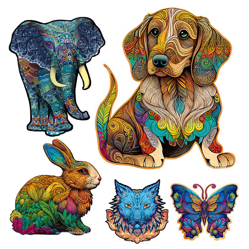 Colorful Elephant Rabbit Butterfly Wooden Puzzle 3D DIY Game Gift for Adults Kids Educational Toy Shape Board Set