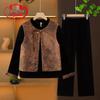 LangSha New Chinese Style Gold Velvet Vest, Shirt & Wide-Leg Pants Set — купить товар онлайн с бесплатной доставкой по всему миру!