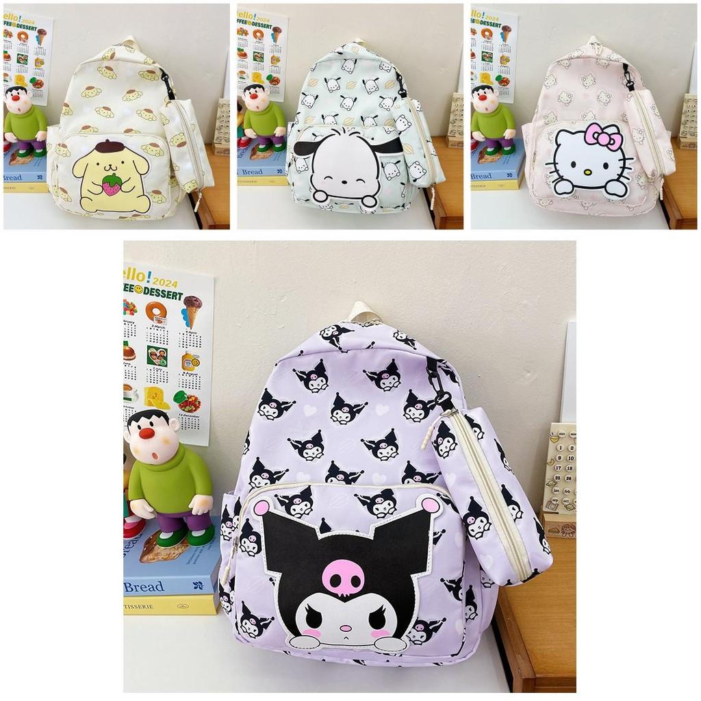 Introducing our delightful Kids Backpack, a whimsical and functional accessory designed to bring joy to your childs school experience. With vibrant cartoon designs featuring beloved characters such as Hello Kitty, Pudding Dog, Pachaco, Kuromi, Cinnamoroll, and Melody, this backpack is not just a carrier; its a canvas of creativity that your child will adore. Crafted from durable nylon and lined with soft polyester, this backpack ensures longevity while keeping its playful charm intact. Suitable for both boys and girls, it's the perfect companion for children starting their educational journey.