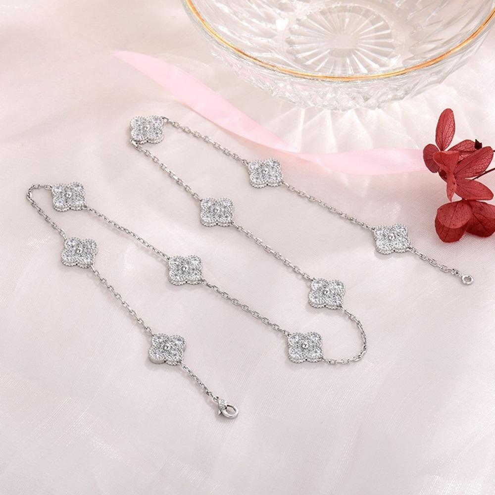 10-flower Lucky Four-leaf Clover Clavicle Chain Natural White Mother-of-pearl Necklace with Agate Accents
