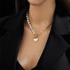 Ladies Titanium Steel Pearl Love Heart Pendant Necklace Jewelry
