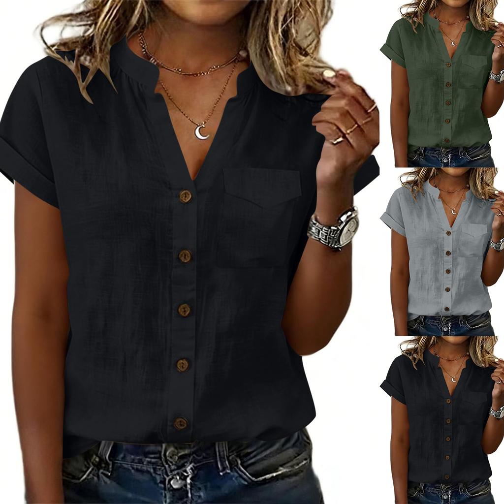Women's Casual Top Monochrome Pleated Top Round Neck Short Sleeved Shirt — купить товар онлайн с бесплатной доставкой по всему миру!