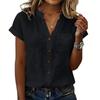 Women's Casual Top Monochrome Pleated Top Round Neck Short Sleeved Shirt