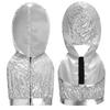 Sleeveless Backless Hooded Crop Top for Girls: Front Zipper Sparkling Sequins Dancewear for Hip-Hop Jazz Performance