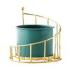 Ceramic Flowerpot Flower Plant Pots Balcony Courtyard Potted Plant Flowerpot with Iron Frame Home Garden Tray