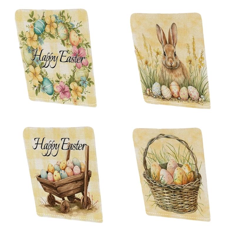 Holiday Inspire Easter Rabbits Print Plush Dining Chair Slipcover Dustproof for Home and Party Decoration