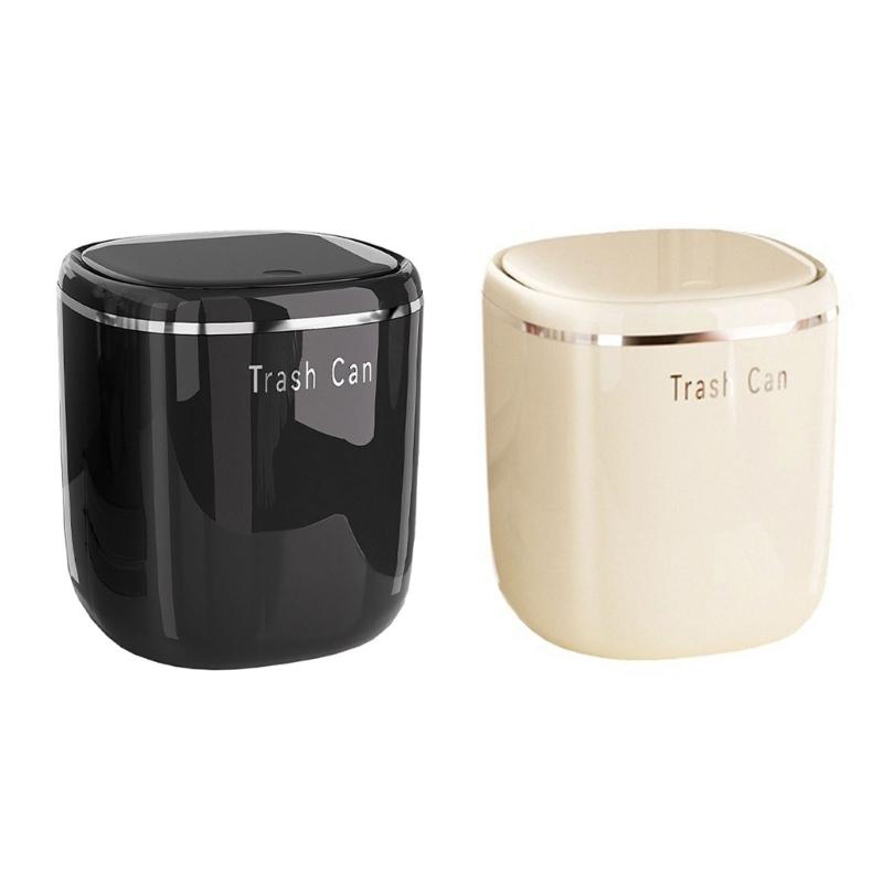 Mini Cream Flips Lid Trash Can Durable Plastic For Desk Organization In Dorm And Office With Space Saving