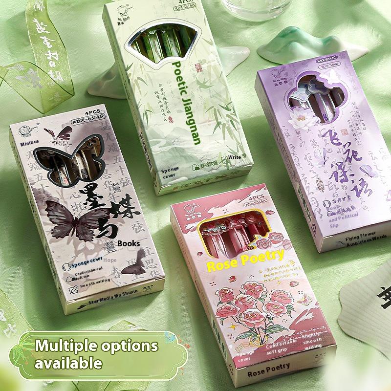 4 шт./набор Креативная гелевая ручка с мягким захватом, нажимного типа, 0,5 мм, шариковая ручка с черными чернилами, нейтральная ручка с заплаткой в виде бабочки, подарочные пишущие инструменты