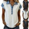 Women's Fashionable New Pullover Collar Button T-shirt, , Elegant Washed Denim Patchwork Knitwear, Faux Two-piece Top