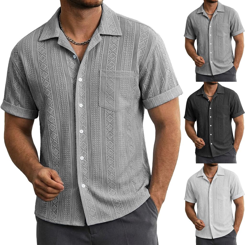 Мужская повседневная рубашка с карманом и воротником, с коротким рукавом