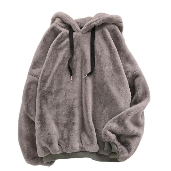 Толстовка с капюшоном на шнурке, с длинными рукавами, эластичными манжетами, плотная, теплая, однотонная, двусторонняя плюшевая, унисекс, Осень-Зима