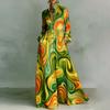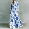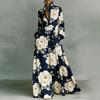 Women's Fashionable Stand Up Collar Long Sleeved Floral Print Waist Slimming Retro Casual Vacation Dress — купить товар онлайн с бесплатной доставкой по всему миру!