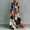 Women's Fashionable Stand Up Collar Long Sleeved Floral Print Waist Slimming Retro Casual Vacation Dress