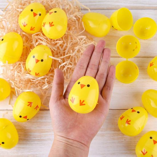 2.4 Inch Plastic Chick Easter Eggs Empty Yellow Mini Fillable Eggs for Easter Basket Stuffers Hunt Games Party Supplies