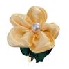 This elegant hair tie features hand-folded, three-dimensional satin flowers with securely inlaid imitation pearls, showcasing exquisite craftsmanship and a unique, high-end texture. Made from glossy satin fabric, it offers a soft, smooth feel that won’t tangle hair or irritate the scalp.