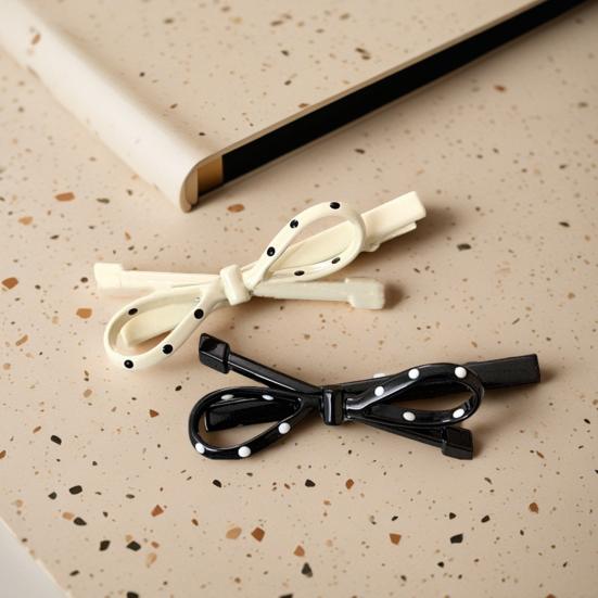 Вневременной черно-белый контраст: Эти заколки с классическим ретро-узором в горошек молочно-белого и чисто черного цветов предлагают простую, но утонченную эстетику с ленивой элегантностью в французском стиле.. Эта универсальная цветовая гамма подходит ко всем цветам волос и нарядам, делая ее стильным аксессуаром, который никогда не выходит из моды.