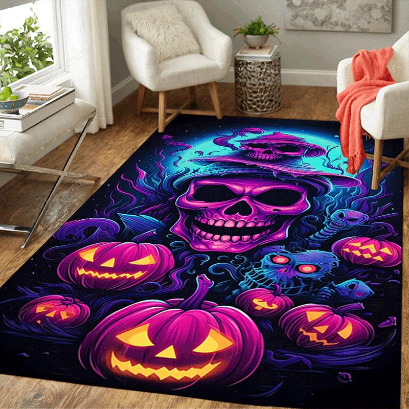 1pc Skull and evil pumpkin Print Design Area Rug - Soft, Anti-Slip, and Durable Gaming Room Decor for Bedroom