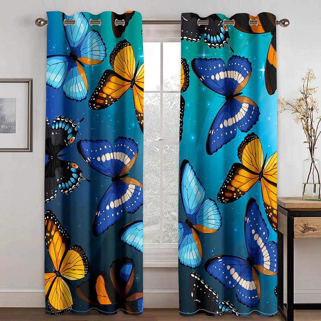 Floral Butterfly Print Drapes Grommet Curtains for Bedroom Living Room Decor with Hooks Rod Pocket
