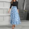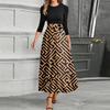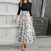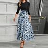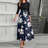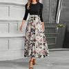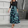 Women's Fashion Casual Belt Round Neck Floral Stitching Elegant Temperament Three-quarter Sleeve Dress — купить товар онлайн с бесплатной доставкой по всему миру!