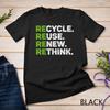 New Hot Recycle Reuse Renew Rethink T-Shirt Eco Earth Day Unisex