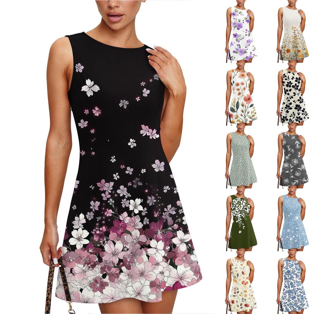 Женское летнее платье повседневное без рукавов с круглым вырезом с цветочным принтом сарафан-майка — купить товар онлайн с бесплатной доставкой по всему миру!