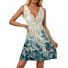 Women's Dress V-neck Sleeveless Casual Floral Print Hem Pleated Dress