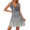 Women's Dress V-neck Sleeveless Casual Floral Print Hem Pleated Dress — купить товар онлайн с бесплатной доставкой по всему миру!