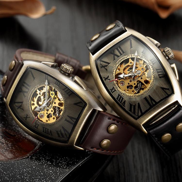 Shenghua Shenhua 9268 Мужские Механические Часы Ремешок Заклепка Пряжка Модные Мужские Бронзовые Часы