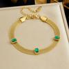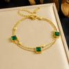 Двухслойный браслет с позолотой, квадратным зеленым цирконом, винтажная изумрудная цепочка-шарм для женщин, изящное элегантное повседневное украшение