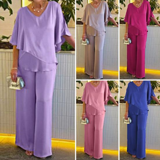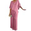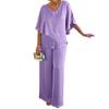 Элегантный и универсальный набор из двух предметов: Улучшите свой гардероб с помощью этого изысканного комплекта из двух предметов, включающего стильный топ с рукавами «летучая мышь», V-образным вырезом и неровным подолом в сочетании с широкими брюками с высокой талией.. Идеально подходит как для повседневных прогулок, так и для официальных мероприятий.