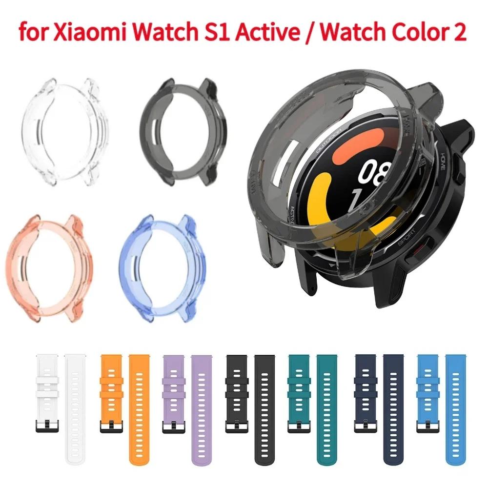 For Xiaomi Watch Color 2 Screen Glass Protector Case TPU Cover Case for Xiaomi Watch S1 Active Watch Protective Bumper Cover