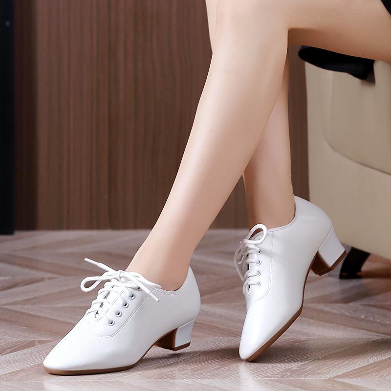Tesley her new white latin dance shoes women's adult square dance shoes middle heel dance shoes breathable non-slip