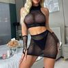 Women's Fishnet Sexy Hollow Out Lingerie Set 2 Piece Crop Top And Skirt Erotic Lingeries For Women