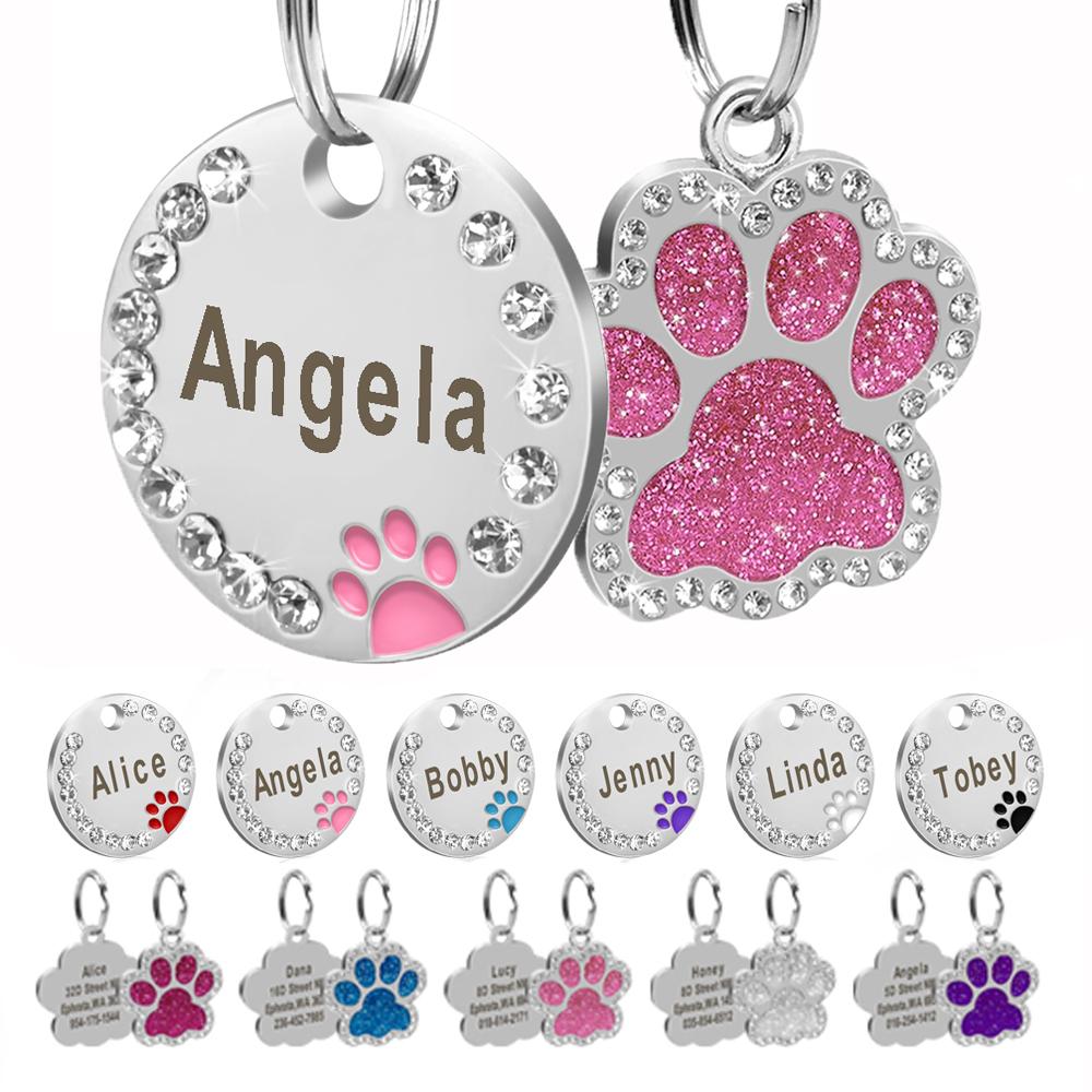 Personalized Dog Cat ID Tag Bling Rhinestone Puppy Kitten Name Tags Anti-lost Pet Collar Accessories Free Engraved Pet Products — купить товар онлайн с бесплатной доставкой по всему миру!