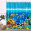 Океанская шторка для душа Синие шторки для душа для ванной комнаты Морские животные Полиэстер Подводный пейзаж Набор штор для ванной комнаты с крючк
