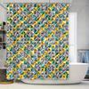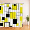 Modern Geometric Pattern Bathroom Shower Curtain Set Decorative Home Accessory in Bold Yellow Gray Colors for Bathrooms.