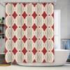 Red and white geometric shower curtain decor with patterned design for bathroom home kitchen accessories set includes hooks (24x