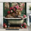 Шторка для душа «Дикая природа джунглей» с тигром, растениями, тропическими пальмовыми листьями, полиэстер, для ванной комнаты, с крючками, S