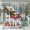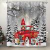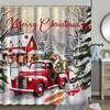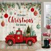 Merry Christmas Shower Curtain Waterproof Red Car with Christmas Tree Bathroom Curtains Snow Xmas Bathroom Decor Set With Hooks