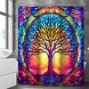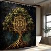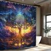 Mystical Mandala Tree Shower Curtain - Glowing Golden Geometric Patterns,Cosmic Night Sky,Nature & Abstract Art,All-Season Decor