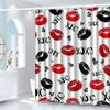Valentine's Day Mr. Black and White Ladies Lipstick Mustache Shower Curtain, Bathroom Decorative Shower Curtain, Waterproof Show