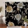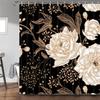 Занавеска для душа Torich Black Gold Floral, Бохо Темные Розы Листья Ботаническая Эстетика Цветочная Занавеска для Ванной с Крючками