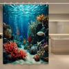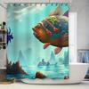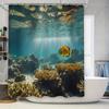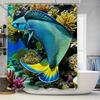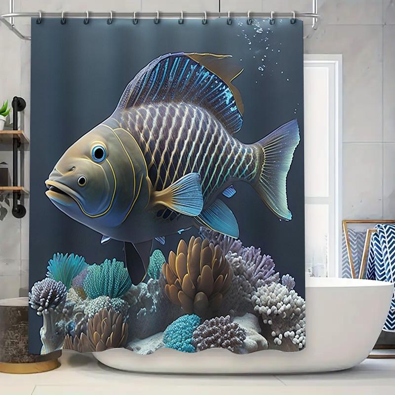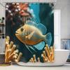 Large Fish Printed Shower Curtain Bath Decor with Sea Coral Design 3D Waterproof Polyester Fabric for Home Decoration SizeL180xW