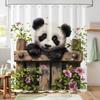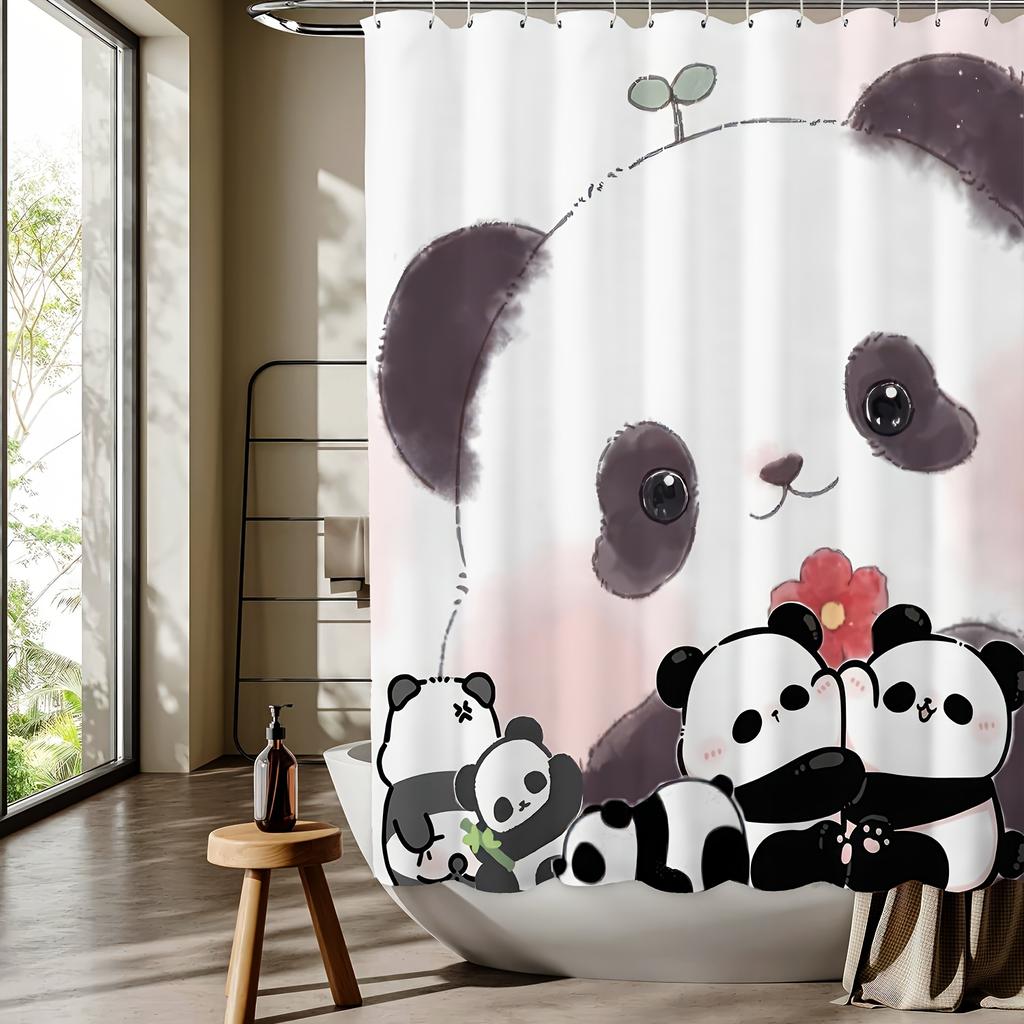 Cute Cartoon Panda Pattern Digital Print Shower Curtain - Machine Washable, Reversible Polyester, All-Season Bathroom/Home Decor