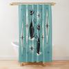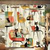 Шторка для душа с атомными кошачьими полосками и звездным ливнем, ретро, Mid Century Modern, декор ванной в стиле MCM, китч, любитель черных кошек